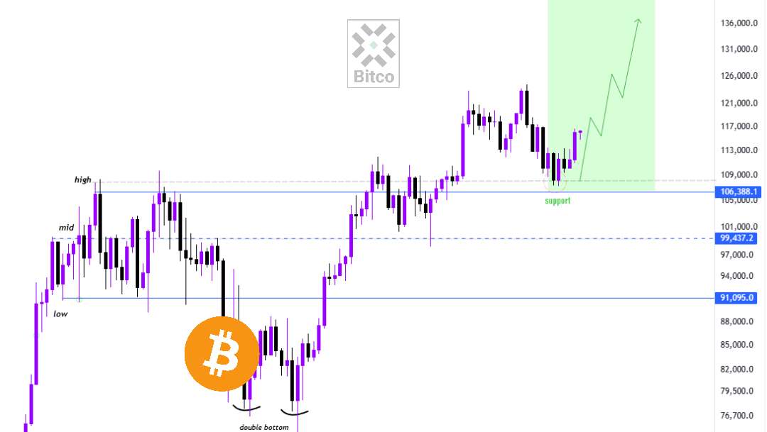 ارز: بیتکوین روند: صعودی تحلیل زمانی: میان مدت